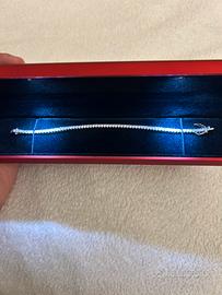 Bracciale Tennis argento 925 e placcato in oro bianco con zirconi bianchi da 2,5 mm. La lunghezza del bracciale è di 18 cm ideale sia per lui che per lei.