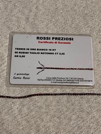 Vendo magnifico bracciale tennis in oro bianco, 80 rubini per 2,42 KT corredato di suo certificato di garanzia. Lunghezza 18 cm adatto sia per uomo che per donna.