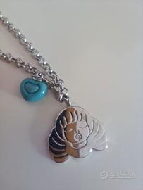 Questo pezzo unico presenta due ciondoli distintivi: l'iconico Angelo Thun (simbolo di protezione) e un tenero Cuoricino in ceramica (specificare il colore se lo si sa, es. rosso, rosa, panna).