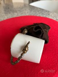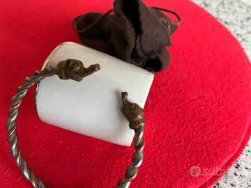 Bracciale tibetano con teste di elefante intrecciato con tre metalli, rame ottone e peltro