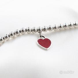 Emblema dello stile elegante e intramontabile di Tiffany & Co., questo bracciale in argento 925 presenta il celebre ciondolo a cuore smaltato in rosso con incisione “Please Return to Tiffany”. Con un peso di 5,6 grammi, è un gioiello raffinato e simbolico, perfetto per chi desidera indossare un accessorio di classe con un tocco di colore e personalità.