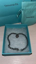 Bracciale Tiffany & Co. con perline in argento e cuore rosa. Completo di scatola, sacchetto e shopper originali come in foto. ideale come regalo.