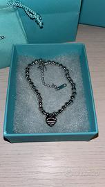 Bracciale Tiffany & Co. con perline in argento e cuore rosso. Completo di scatola, sacchetto e shopper originali come in foto. ideale come regalo.