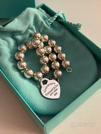 Bracciale tiffany& co originale, con sfere grandi da 8 mm e cuore pendente in argento con scritta please return.
