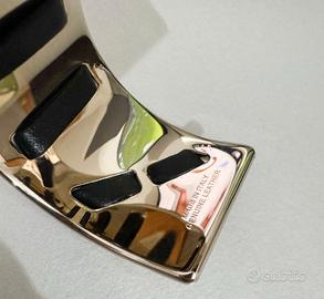 Tod's Black Leather Criss Cross Gold Tone originale mai indossato, metallo rivestito color oro leggero e vera pelle nera.