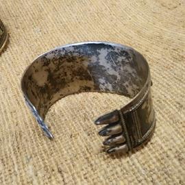 Bracciale persiano in argento cesellato a mano con pietra dura corniola e lapislazzuli. Provenienza Iran, importazione negli anni 80, conservato come oggetto da collezione. Oggetto etnico antico.