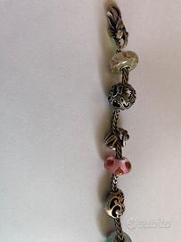 Bracciale Trollbeads composto da bracciale, chiusura a doppia apertura, 4 beads in vetro ( Pavone Prehnite, Anemone francese, Cuore in fiore, Fiore soave) e 4 beads charms in argento 925 ( Maternità, Cuore la mia luce, Acquario segno zodiacale, Sfera Natalizia dolci forme edizione limitata).