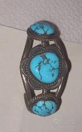 Bracciale turchese e argento sterling vintage - n°3 turchesi incastonati in un splendido e raro bracciale in argento - Vintage Three Stone Turquoise Sterling Silver Cuff Bracelet - peso totale 35 grammi