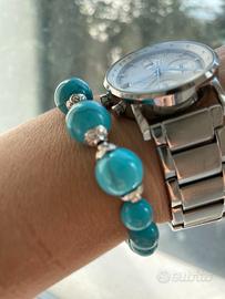 Bracciale in turchese naturale, fatto a mano, taglia unica. Prezzo 21 euro.