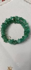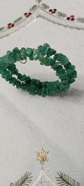 Bracciale unisex a molla in pietra dura verde. Le pietre sono irregolari.