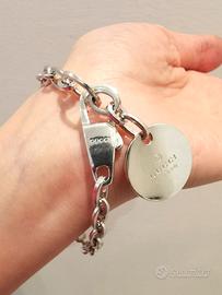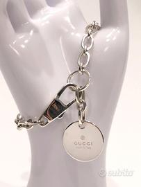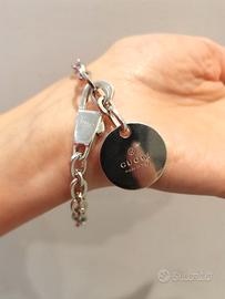 Bracciale unisex Gucci collezione Trademark con charm rotondo, in argento sterling 925.