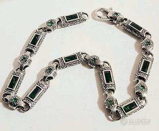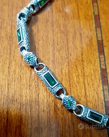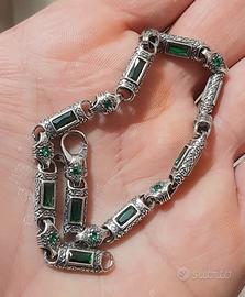 fantastico bracciale in argento 925 e smeraldi su entrambi lati del bracciale prezzo di listino 589 euro .