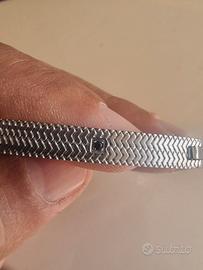 Bracciale in acciaio della linea "Comete Gioielli", con piccola pietra nera per aggiungere un tocco di stile al tuo look. Realizzato in acciaio di alta qualità, presenta una larghezza di 6,3 mm e uno spessore di 2,83 mm ed è impreziosito da un brillante zircone nero che cattura la luce con ogni movimento.. Da indossare in ogni occasione per un effetto di tendenza. Nella busta e nello o scatolo originali Comete Gioielli.