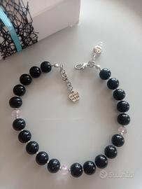 Pietre: onice nera, cristalli sfaccettati, perline argento