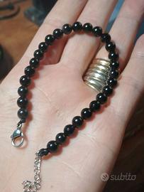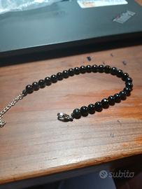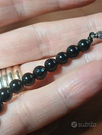 Bracciale uomo e unisex in perle di ossidiana (pietra lavica). Lunghezza cm. 22, le sfere hanno diametro 0,5 cm. Il bracciale è stato appena rifilato e il moschettone è nuovo.