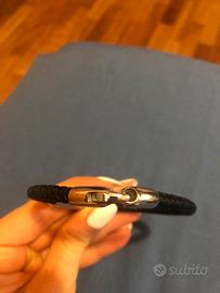 Bracciale uomo con cinturino a treccia in pelle, chiusura in acciaio come il dettaglio col brillantino. Mai usato e in ottime condizioni.