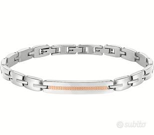 Bracciale da uomo di Morellato della collezione motown. Gioiello realizzato in acciaio della misura di 60 cm, piastra centrale ed elementi in pvd oro rosa. La referenza è sals47