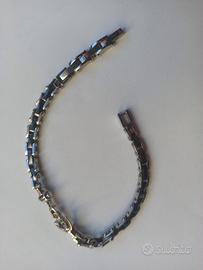 Bracciale da uomo in acciaio con struttura colore acciaio e elementi in colore nero. Al centro presenta un ancora. Lunghezza variabile da circa 16 a 19 cm grazie ad elementi scollegabili all'estremità
