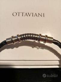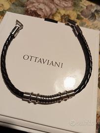 Bracciale uomo Ottaviani in acciaio e pelle intrecciata con cartellino ,scatola originale,mai usato ,nuovissimo.Prezzo scontatissimo.