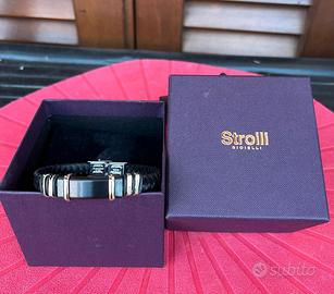 Vendo bracciale da uomo, marca Stroili, in pelle nera e inserti in acciaio inox. Confezionato in scatola d'acquisto.