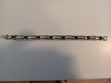 Bracciale uomo in acciaio, color argento con inserti neri. Nuovo, mai indossato, con custodia