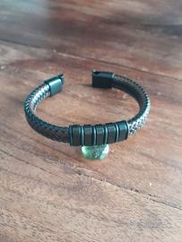 Bracciale da uomo dallo stile vintage e ricercato, realizzato a mano con intreccio in ecopelle di alta qualità. Un accessorio versatile, perfetto per completare un look casual o urban. Il design combina la morbidezza della pelle sintetica intrecciata con una robusta catena centrale, donando un tocco maschile e deciso al polso. Dettagli dell'oggetto: •Materiale: Ecopelle (pelle sintetica) resistente e piacevole al tatto. •Stile: Vintage / Boho-Chic / Handmade. •Colore: Marrone scuro (finitura naturale). •Chiusura: Sicura e pratica. •Condizioni: Nuovo, mai indossato. Ottima idea regalo per compleanni o occasioni speciali. Leggero e comodo da portare tutto il giorno.