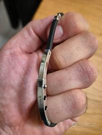 Vendo braccialetto uomo della Zancan, in acciaio e silicone con inserti in oro 750. Lunghezza 22 cm con possibilità di accorcio di 1,5 cm grazie alla chiusura regolabile. . No perditempo.