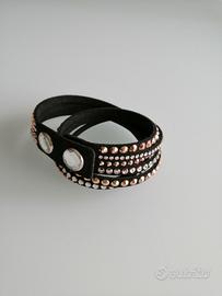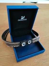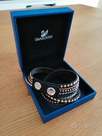 Bracciale della Swarovski modello Slake. Realizzato in pelle a doppio giro con Swarovski applicati sopra.
