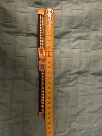 Vendo bracciale uomo Versace nuovo in scatola originale in pelle e con busta.. colore bronzo e con maniglia a scomparsa.. seguito da un laccio di cuoio nero resistente.. nuovo ideale per fare o farsi un regalo