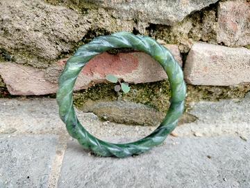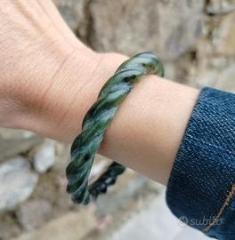 Braccialetto vintage da donna di giada, colore verde, rigido, torchon. Diametro interno del bracciale: 6,3 cm circa. Il gioiello è visibile a Poggio a Caiano (Po). Spedizione disponibile con TuttoSubito.