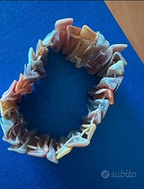 Bellissimo bracciale elastico composto da placche rettangolari in madreperla naturale dai toni caldi e iridescenti: beige, avorio, ambra e marrone. Ogni elemento è unico grazie alle venature naturali della madreperla, per un effetto elegante ma allo stesso tempo boho e casual. • Comodo da indossare grazie alla fascia elastica • Si adatta facilmente a diverse misure di polso • Perfetto per l'estate o per dare un tocco etnico-chic ai tuoi outfit Condizioni: ottime M Ottima idea regalo o accessorio versatile da indossare ogni giorno!