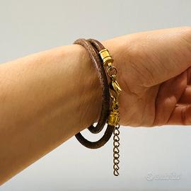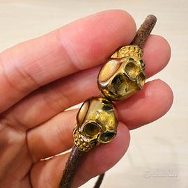 Bracciale vintage vera pelle + teschi in ottone 💀 Unisex