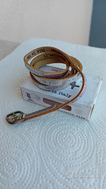 La fibbia in lega bagnata in argento invecchiato funge da chiusura.