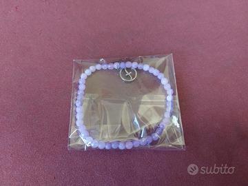 Elegante bracciale ZOPPINI con perline in ametista viola (nuovo). - Charm rotondo color argento con simbolo. - Elastico per una facile vestibilità.