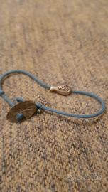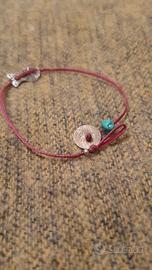 Braccialetti artigianali in corda, con ciondolo in argento e chiusura a bottone.