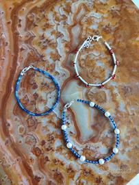 3 braccialetti di perline e apposito filo in acciaio con chiusura. Nuovi