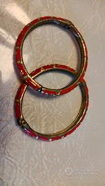 Coppia di braccialetti donna, Chiusura a scatto. Lavorati con colore oro su base colore rosso.