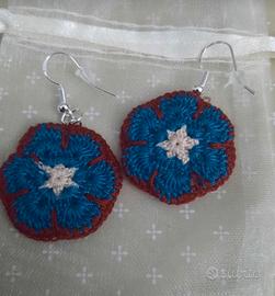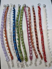Braccialetti e orecchini realizzati all'uncinetto con cristalli di vetro e filati per realizzare gioielli. Prezzi da concordare in base al numero.