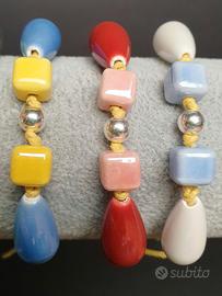 Organizziamo eventi e proponiamo coloratissimi e simpatici braccialetti personalizzabili per un regalo, evento o ricorrenza particolare. Ottima idea regalo anche per gli invitati di feste di compleanno di bambini o adulti. Illimitate combinazioni di perline in CERAMICA a forma di quadrifoglio, pesciolino, tartaruga, occhio portafortuna, cuore, goccia, dadi tutti di diversi colori (rosa, rosso, bianco, giallo, verde chiaro, verde scuro, lilla e molti altri). Abbinate alle perline in ceramica si possono inserire anche delle sferette in ARGENTO 925. Cordoncino in cotone cerato con scorrevoli per tutte le misure. Per maggiori info e dettagli contattatemi pure! Prezzi a partire da 3 euro variabile in base alla composizione scelta. Possibile spedizione con raccomandata o per più quantità con pacco ordinario.
