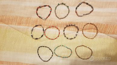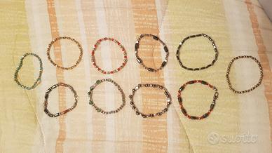 Serie di braccialetti con vari pepite in acciaio inox color oro placcato e altre varie perline di vari colori e perline ematite calamitare molto particolri con buona