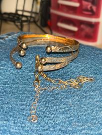 Set di 4 bracciali color oro, con qualche decoro.