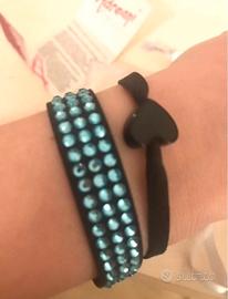 Braccialetto Andreani nuovo con Swarovski Elements regolabile anche per polsi piccolini pelle scamosciata nera