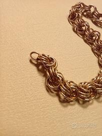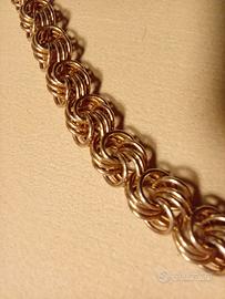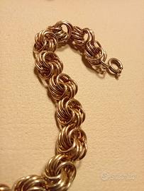 Bellissimo bracciale Art Decò ( 1920/1930) Patina quasi dorata, anelli intrecciati fra di loro. Lunghezza 19 cm, peso 28 grammi