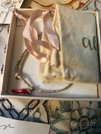 Braccialetto argento con cornino porta fortuna nuovo. Con scatola, descrizione, sacchetto originale