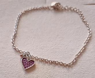 Braccialetto argento MABINA con ciondolo a cuore fucsia. Cinturino regolabile alla chiusura. Scatola originale.