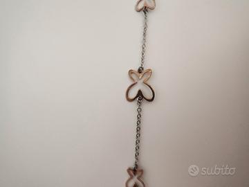 braccialetto argento 925, decoro farfalle dorate. lunghezza complessiva 18 cm. leggermente ossidato come si vede in foto. nuovo.