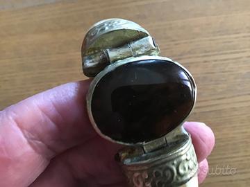Si tratta di un braccialetto perfettamente circolare realizzato da diversi strati di osso di cammello.