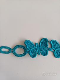 Braccialetto azzurro formato da tante farfalle all'uncinetto rese rigide da apposito trattamento con chiusura senza metalli, adatto per chi ha allergie lungh. 21