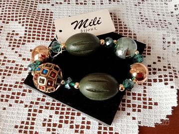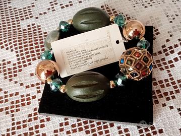 Braccialetto bigiotteria nei toni del verde,misura cm 25.Ciondoli in metallo e legno