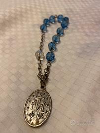 Braccialetto con Madonnina dei Miracoli con pietre azzurre, decina per Rosario